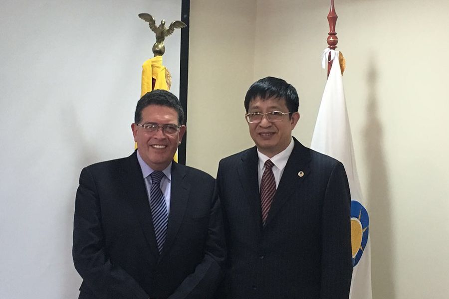From November 15th to 19th, 2016, HEI President Qu Aimin visited the sites of the EXTRA HIGH VOLTAGE TRANSMISSION SYSTEMS AT 500 KV AND ASSOCIATED WORKS AT 230 KV Project and Minas Hydropower Project in Ecuador, and was invited as a representative of Chinese enterprises and attended the welcome banquet hosted by Ecuador President Correa for Chinese President Xi Jinping on Nov. 17 to18. President Xi met with Mr. Qu at the dinner.