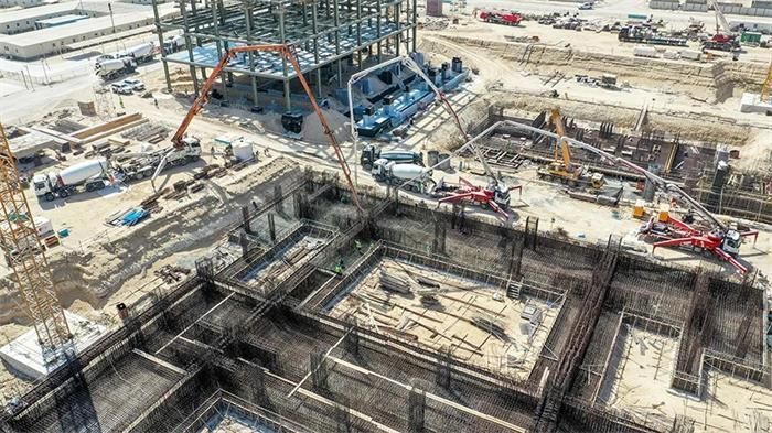 At 19:00 on October 2nd, local time, the first concrete pouring of Unit 4 foundation of Dubai Hassyan 4×600MW clean coal-fired power station project undertaken by HEI was successfully completed. This time, a total of 1,103 cubic meters were poured, which laid a solid foundation for the follow-up Hassyan Project Unit 4 boiler foundation construction and boiler steel structure hoisting work.