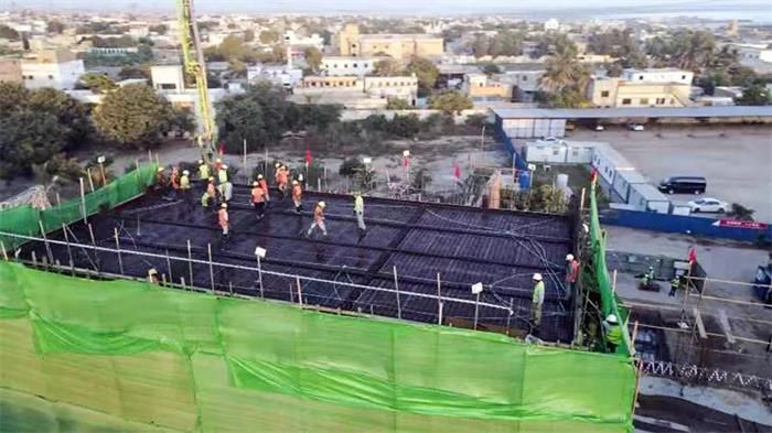 Recently, in the construction of HEI's Pakistan BQPS III 900MW Combined Cycle Power Plant, the structural roofs of the GIS rooms in Landhi and KTPS substations were poured separately, a total of 193 cubic meters of concrete were poured. The capping of the structure marked the completion of the main structure of the GIS plant.