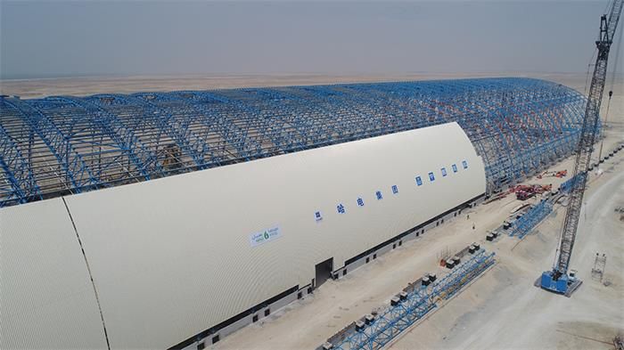 The main truss structure of the dry coal shed at Coal Storage Yard 1 of the Dubai Hassyan Project was capped ahead of schedule