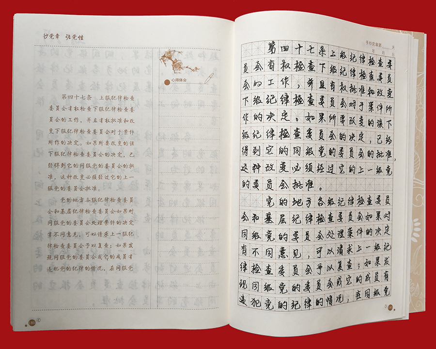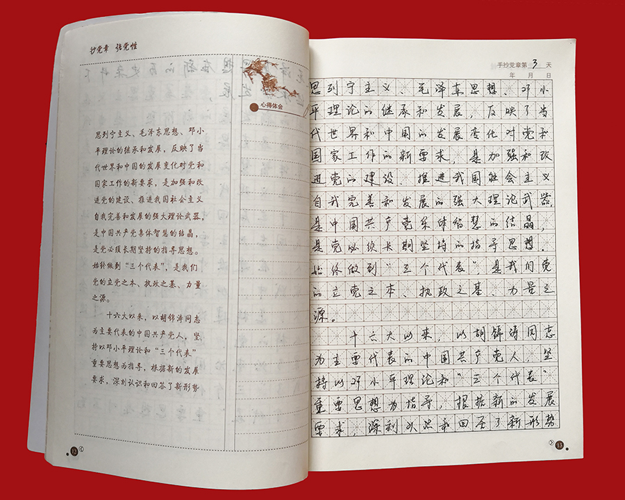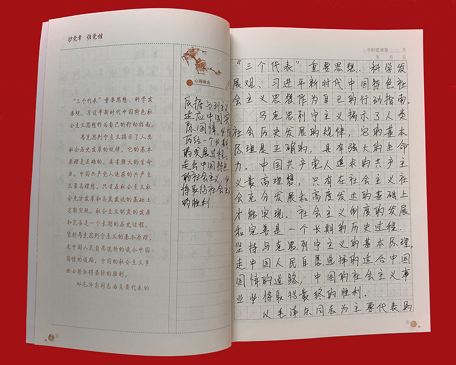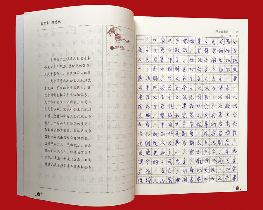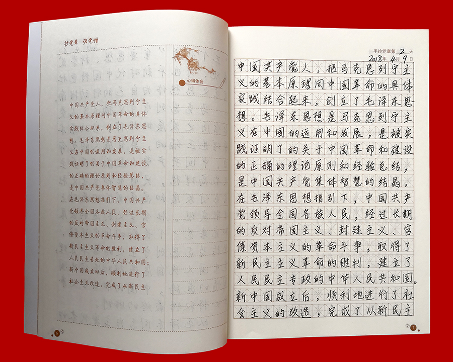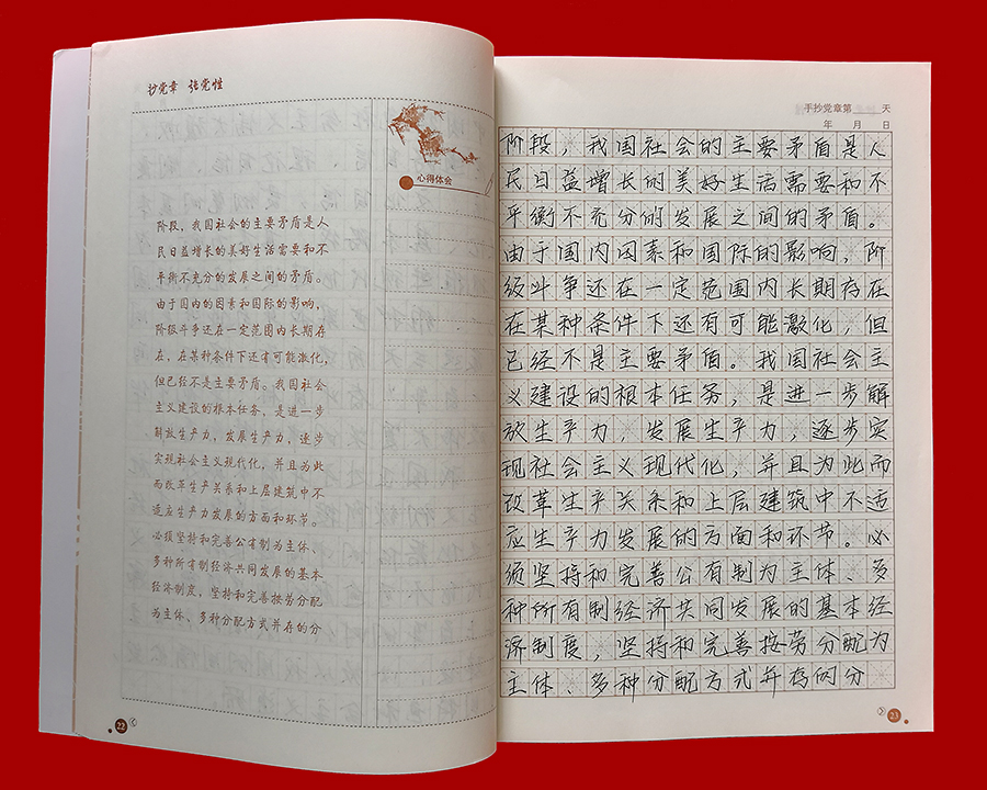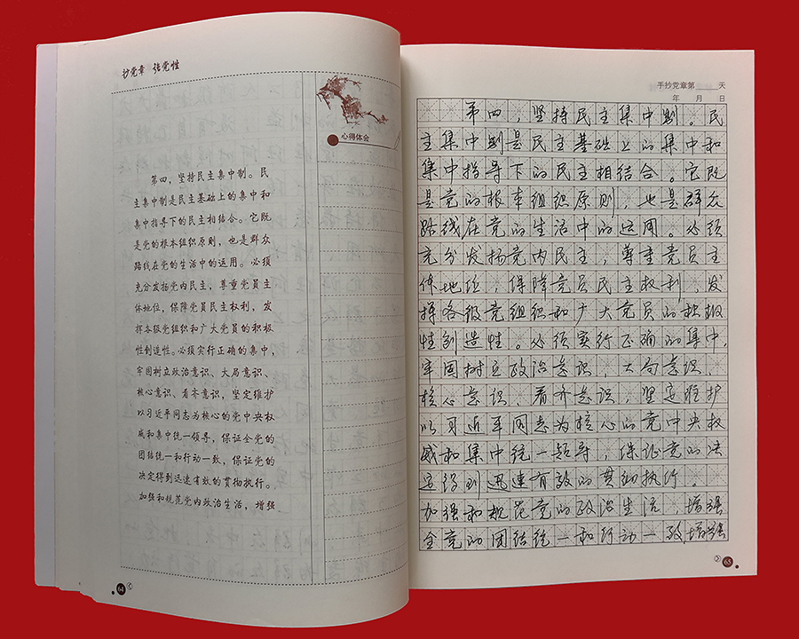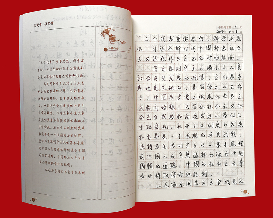 日前,776net必赢官网党委“手抄党章”活动圆满结束。为检验广大党员的学习成果,促进“两学一做”学习教育常态化制度化取得实效,776net必赢官网党委对全体党员的手抄党章成果进行了检查评比。 “手抄党章”活动是776net必赢官网推进“两学一做”学习教育常态化制度化建设的一项重点内容,旨在引导广大党员干部以实际行动学习、遵守党章,深刻理解党的纲领,牢记党的宗旨、义务和权利。自4月初“手抄党章”活动开始以来,776net必赢官网全体党员将手抄党章作为一项重要的工作内容,平时习惯用电脑的党员们纷纷拿起笔杆子,利用业余时间抄写党章、重温党章,让学习党章成为习惯,将党章所要传达的思想和精神内化于心,并以党章严格要求自己,规范言行,使践行党章外化于行。776net必赢官网党委还鼓励全体党员干部结合工作实际,认真思考,积极撰写学习心得,加强对党章的理解,提升党性修养。 776net必赢官网全体党员已经全部完成党章抄写后,776net必赢官网党委对党员的手抄成果进行了检查评比。776net必赢官网党委根据各党支部对党员的“手抄党章”初评推荐的30本“手抄党章”优秀作品,按照字体是否端正、字迹是否美观、书写是否整洁、抄写内容是否准确无误等标准进行了评比,最终选出10本优秀“手抄党章”作品。