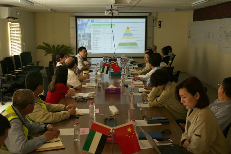 7月6日,国务院国资委“中央企业‘一带一路’海外形象建设工作团”由国务院国资委宣传局副局长刘福广和党建局团工委副书记巴清宏带队,到哈电集团国际公司迪拜哈翔项目现场对海外形象建设和党建工作调研。 国际公司向中央企业“一带一路”海外形象建设工作团介绍了其在国际电站项目总承包领域的重要地位,以及在“一带一路”海外形象建设上取得的成绩。哈翔现场项目团队就项目整体进展情况及现场党小组的党建工作作了专题汇报,并展示了哈翔项目宣传视频和环保宣传片。 中央企业“一带一路”海外形象建设工作团充分肯定了迪拜哈翔项目带动中国元素在国际化道路上砥砺前行的模范精神,并对现场党小组的党建工作给予了高度评价和认可,同时对项目团队提出了三个方面的建议。一是要继续加强海外党建工作,认真领会习近平新时代中国特色社会主义思想和党的十九大精神,积极发挥总承包商的先锋带头作用,以海外党建的区域优势建立哈翔党建品牌。二是要加大形象建设和宣传工作的力度。要立足项目实际,从环保,促进国内外就业,带领中国企业、中国产业、中国装备走出海外等方面将央企责任和取得的佳绩更多地展现给国际市场和国内媒体。三是要充分利用中国企业在国际化发展中奠定的良好基础,借助BOO模式的长期示范代表作用,把迪拜哈翔项目打造成为一个具有国际影响力的高端项目,为把哈电集团建设成具有全球竞争力的世界一流企业增砖添瓦。