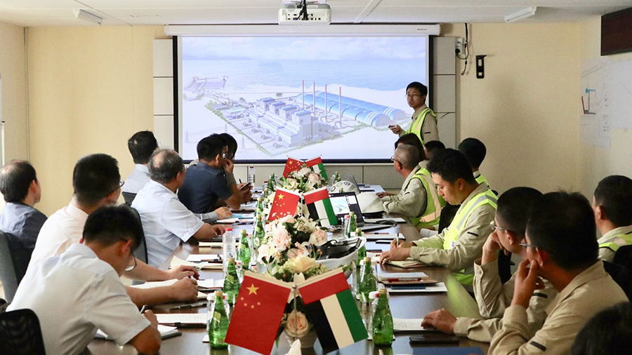2018年8月14日,外交部、商务部、中国驻迪拜总领馆联合调研组由外交部亚非司副司长肖军正和迪拜总领馆副总领事王振山带队,到776net必赢官网迪拜哈斯彦项目现场调研。 迪拜哈斯彦项目团队向调研组简要介绍了项目背景和项目进展情况,并对哈斯彦项目的安全管理、环境保护、合规管理及现场党建工作作了专题汇报。 联合调研组充分肯定了迪拜哈斯彦项目管理能力,并对环境保护给予了高度评价和认可,同时对项目团队提出四个方面的建议。一是要注重项目执行过程中的经验积累和总结,为日后中资企业进一步开发海湾地区市场提供借鉴。二是要充分认识到项目作为国家“一带一路”标杆工程的重要战略意义,发扬创新探索精神,利用“中国元素”优势,积极发挥项目的二次创业作用。三是要从国家政治外交战略实际出发,为推动建立新时代中阿战略伙伴关系、促进中阿贸易往来增砖添瓦。四是要有底线思维意识,做好项目履约工作,保证项目工期和质量。 联合调研组还对迪拜哈斯彦项目建设情况进行了实地考察。