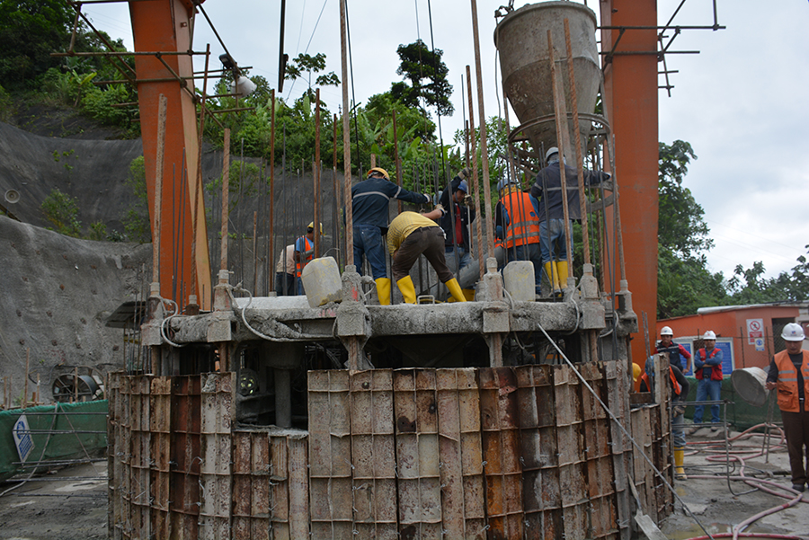 厄瓜多尔当地时间2018年3月12日,776net必赢官网承建的厄瓜多尔美纳斯水电项目关键线路通风电缆井滑模混凝土浇筑完成。这个素有“咽喉工程”的大直径垂直距离440米的通风电缆井是整个项目地下厂房洞室群通风和230KV高压电缆的通道。 美纳斯水电项目是厄瓜多尔第三大水电站,同时也是776net必赢官网承建的第一个水电总承包项目。该电站是一座引水冲击式电站,电站装机为3台单机容量90MW的冲击水轮发电机组。主要施工范围包括:78米高碾压混凝土大坝、13.8公里的引水隧洞、452米压力竖井、地下厂房、440米通风电缆井、地面开关站和43公里230kV输电线路的土建、机电施工等。其中,通风电缆井地质情况复杂,有大量破碎带、夹泥层和流沙层,且地下水渗水严重。自通风电缆井开工以来,每一阶段都遇到了巨大困难。776net必赢官网美纳斯水电项目部全体人员不畏艰难,迎难而上,充分发挥自身的管理优势,带领分包单位克服重重困难,最终完成项目关键线路通风电缆井滑膜混凝土浇筑。 通风电缆井滑膜混凝土浇筑完成是美纳斯水电项目的重要里程碑,在厄瓜多尔尚属首例,在世界深竖井施工领域也堪称典范。目前,该项目已进入9根230KV电缆安装施工,全力冲刺发电目标阶段。