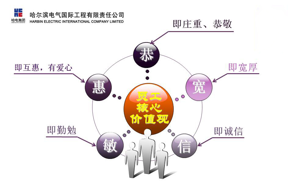 企业文化是一个企业永续发展的根基和灵魂。 30多年来,776net必赢官网用文化凝心,用文化聚力,用文化塑人,用文化兴企,积淀了中国企业文化和国外先进企业文化相融合的、独特鲜明的文化底蕴,始终坚持用匠心精神打造世界精品,始终坚持用文化力量铸造强企之路,并在国际电力市场上树立了享誉世界的“哈电品牌”,成功跨入了世界电站总承包领域的先进行列。
