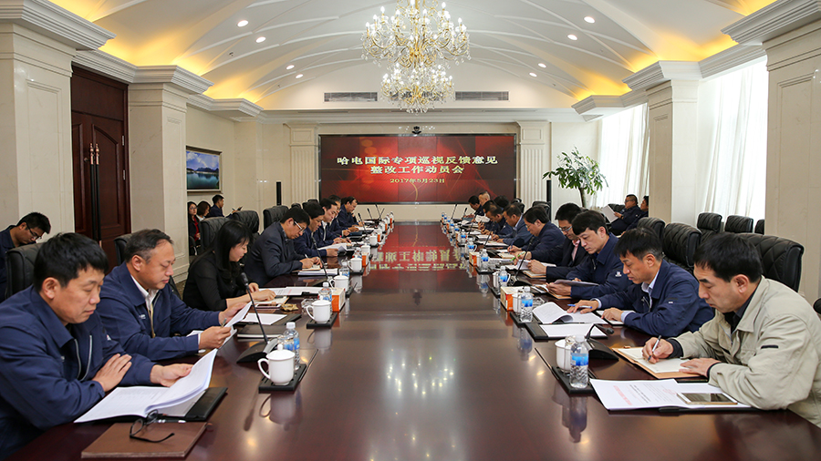 2017年5月23日,776net必赢官网召开专项巡视反馈意见整改工作动员会,全面启动专项巡视整改工作。776net必赢官网党委书记、董事长郭宇主持会议并对哈电集团专项巡视反馈意见整改工作作出部署。
