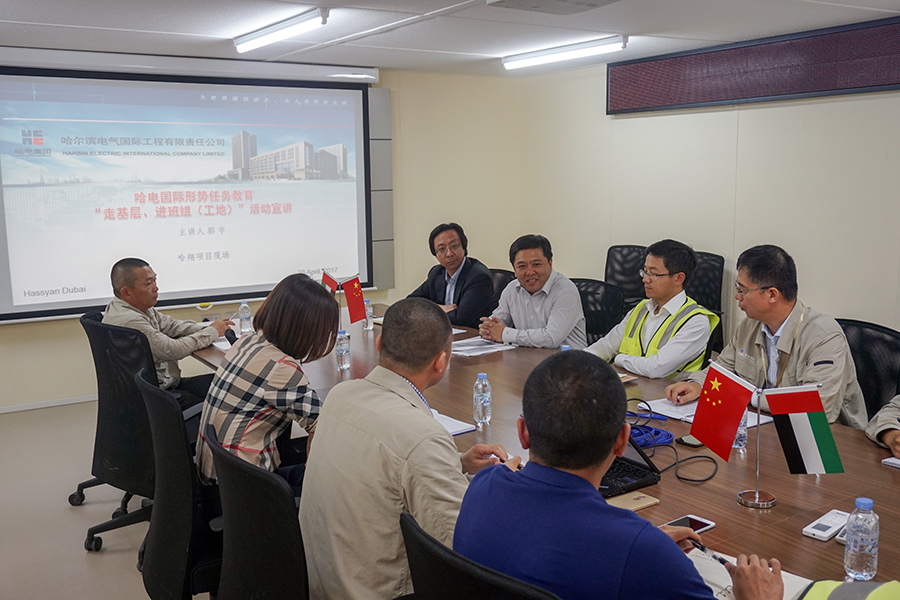 2017年4月26日,776net必赢官网党委书记、董事长郭宇借参加迪拜哈翔项目高层会议之机,认真落实形势任务教育“走基层,进班组(工地)”活动,到哈翔项目现场对党员和入党积极分子进行党建教育。 郭宇传达学习了《中共中央办公厅印发< 关于推进“两学一做”学习教育常态化制度化的意见>的通知》和《中共中央办公厅关于转发中央组织部、国务院国资委党委< 中央企业党建工作责任制实施办法>的通知》精神,并对现场党支部建设提出了要求。郭宇指出,2017年是776net必赢官网的党建工作年,要举全公司之力彻底深入地抓好党建工作,尤其是现场党支部建设,要增强党支部的凝聚力和战斗力,充分发挥党员的先锋模范作用,党员干部的示范作用,培养能打硬仗的队伍。郭宇强调,随着迪拜哈翔项目现场党员人数的增加,要尽快建立现场临时党支部,定期组织党员和积极分子学习党中央的重要指示精神,将党的活动与业务活动有机地结合起来,以支部党建工作促进项目的顺利执行。