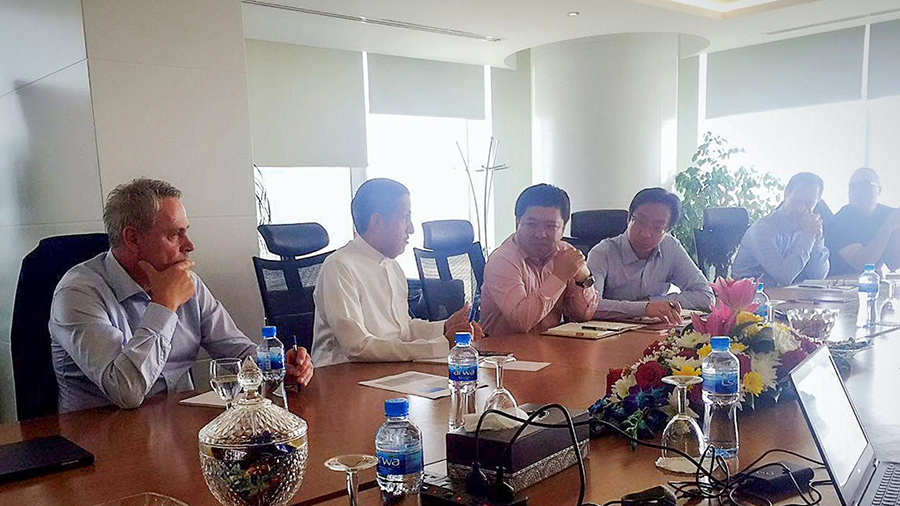 2016年9月14日,776net必赢官网董事长郭宇在迪拜拜会了哈翔项目投资方兼项目业主沙特ACWA公司董事会主席M.Abunayyan,以及GE能源系统CEO A.Lusch,并就推进哈翔项目有关事宜举行了会谈。