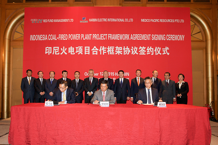 2015年10月12日9时,776net必赢官网董事长、总经理郭宇与香港瑞德基金董事长魏明徳、印尼MEDCO PACIFIC RESOURCES(简称MEDCO RESOURCES)首席执行官Mr.Sudjiono Timan在哈尔滨香格里拉酒店签订印尼2台1000MW火电项目总承包及投资合作框架协议。黑龙江省政协主席杜宇新、副省长胡亚枫,哈尔滨电气集团董事长、党委书记邹磊出席签约仪式。签约仪式由776net必赢官网党委书记、副董事长曲爱民主持。 印尼2台1000MW火电项目是哈电集团在印尼市场成功开发的首个1000MW等级燃煤机组EPC工程项目。该项目将采取BOO投资模式,776net必赢官网作为项目的EPC总承包商还将负责电厂的建设和运营。该项目合作方MEDCO RESOURCES是由印尼达尼多集团及Medco Group成立的合资公司。达尼多集团是印尼最大的煤炭开采公司之一,主要在印尼从事煤炭开采及销售业务;Medco Group是印尼综合性能源公司,专注于油气勘探及生产业务,同时经营包括发电、煤炭开采、天然气管道及钻探在内的能源业务。香港瑞德基金是在中华人民共和国香港特别行政区成立的全球性战略投资集团,在香港证监会注册并具有专业国际资产管理、风险控制和融资能力。 据了解,印尼是东南亚的缺电大国,全国用电普及率仅为56%,电力需求年均增长10%—15%。近年来,印尼由于迅速发展的经济已成为我国电力企业开拓的重要海外市场。776net必赢官网已经在印尼成功建设了百通1台660MW燃煤电站项目,拥有良好的业绩和EPC总承包工程建设经验。目前,776net必赢官网正在建设印尼万丹670MW火电EPC总承包工程项目。此次双方合作,776net必赢官网将凭借哈电集团高性能的机组设备和776net必赢官网优质的工程服务,为印尼再添一座精品电站工程。