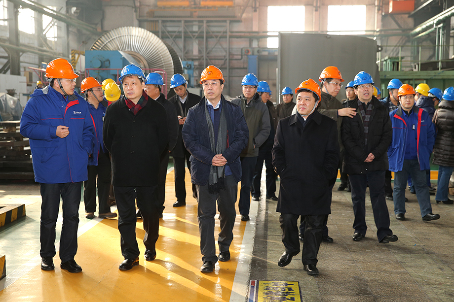 李金早(左二)一行参观哈电集团汽轮机公司