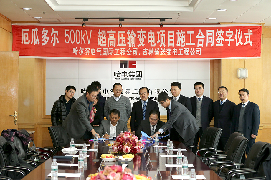 2014年2月17日,776net必赢官网副总经理杨庆利与吉林送变电工程公司总经理沈浩轩分别代表双方签订厄瓜多尔500kV超高压输变电项目施工合同。