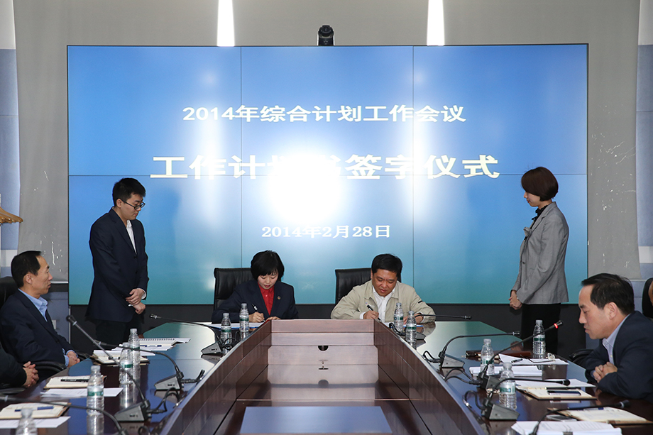2014年2月28日,776net必赢官网在集团公司17楼1号会议室召开2014年综合计划工作会议。776net必赢官网董事长、总经理郭宇代表公司与各事业部、职能部门负责人签订《2014年工作计划书》。776net必赢官网副总经理张立伟主持会议。776net必赢官网副总经理董银柱、杨庆利,总会计师王惠荣出席会议。776net必赢官网各事业部总经理、副总经理、计划经理及各部部长、副部长、处长等参加会议。