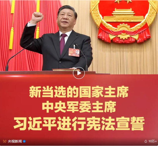 习近平全票当选为国家主席、中央军委主席。
