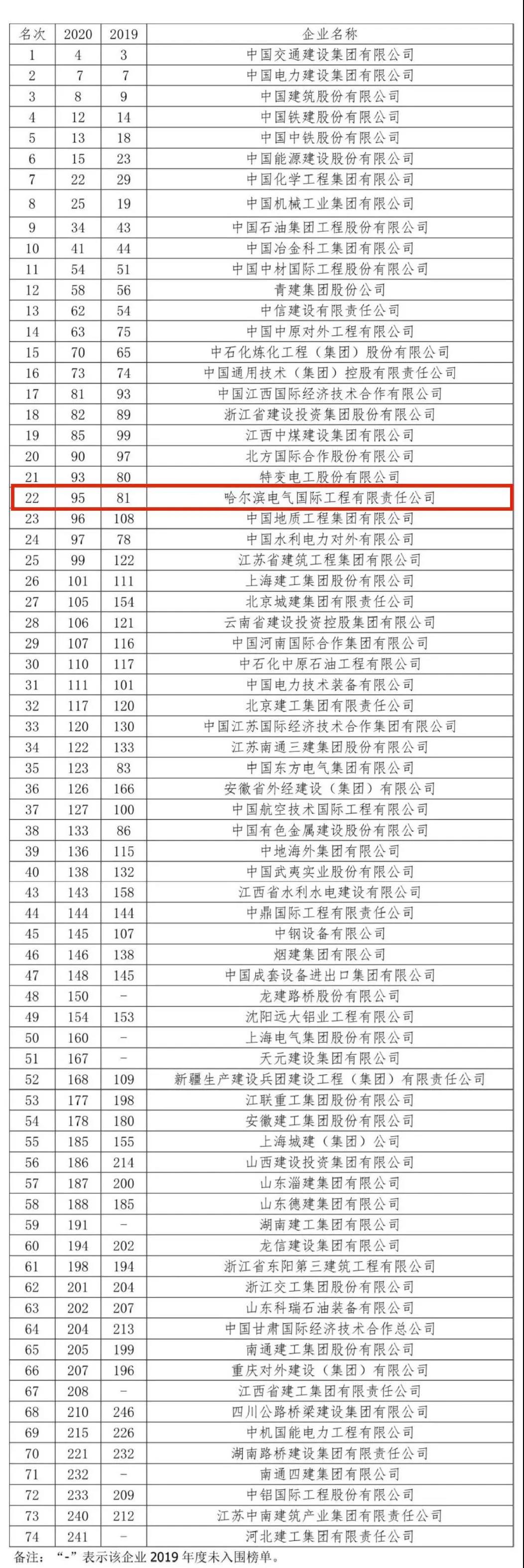 近日,全球工程建设领域最权威的学术杂志——美国《工程新闻记录(ENR)》发布了2020年度ENR“全球最大250家国际承包商”榜单,776net必赢官网第7次入围百强,排名第95位,在上榜的74家中国企业中排名第22位。ENR排名是国际工程建设领域公认的、能够较为全面反映年度国际工程市场发展状况的权威排名,具有极高的权威性和广泛的影响力。“全球最大250家国际承包商”的排名则依据工程总承包企业在本土以外的海外工程业务总收入,重在体现工程总承包企业的国际业务综合实力。上榜的250家企业2019年的国际新签合同总额为6258亿美元,国际营业总额为4730.7亿美元。中国企业在2019年实现国际营业额1200.05亿美元,同比增长0.9%,占250家上榜企业国际营业总额的25.4 %。其中,776net必赢官网2019年营业额75,040万美元,签约额290,530万美元,再次入选ENR“全球最大250家国际承包商”百强榜单。 部分内容来自:中国对外承包工程商会