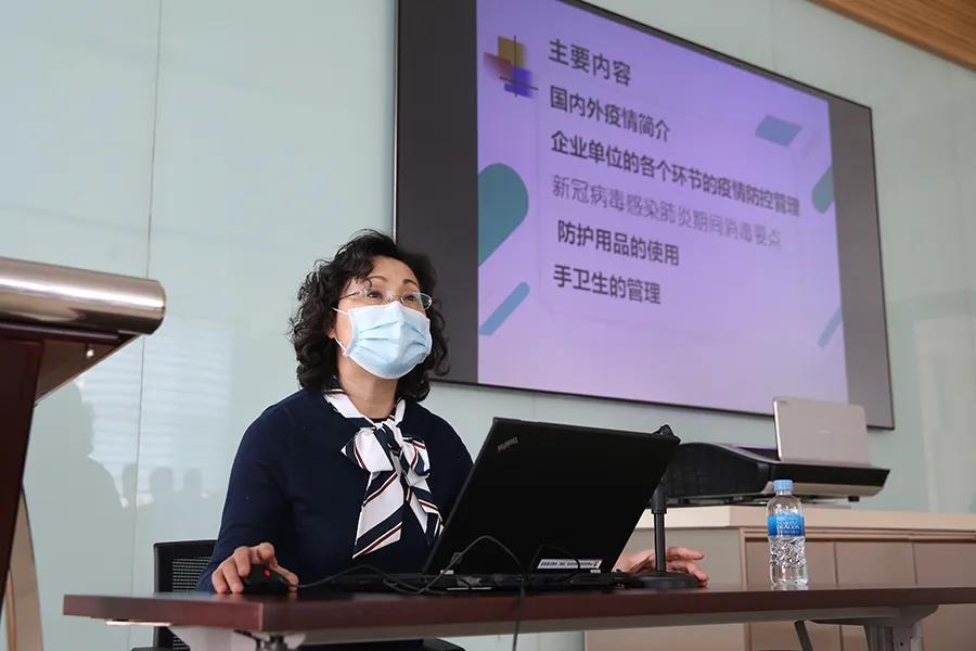 阚丽君以“企业单位海外疫情防控指导”为主题,从国内外疫情介绍、企业单位各环节的疫情防控管理、新冠病毒感染肺炎期间消毒要点、防护用品的使用以及手卫生的管理等方面进行了全面的讲解。