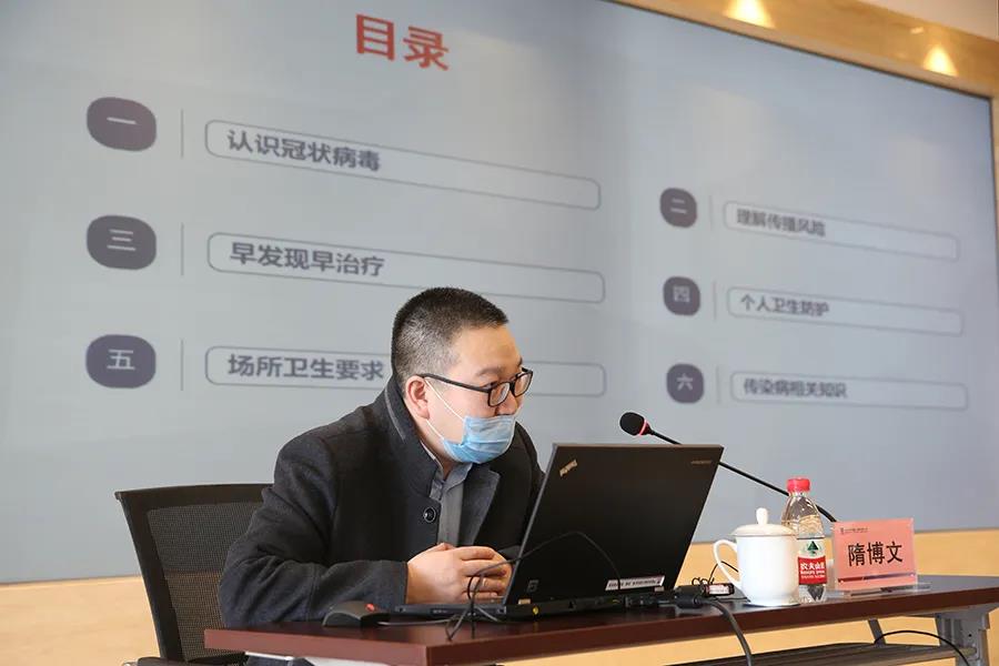 隋博文以“新冠肺炎预防”为主题,从认识冠状病毒、理解传播风险、早发现早治疗、个人卫生防护、场所卫生要求以及传染病相关知识等六个方面进行了详细的讲解。 三位专家的讲座从不同角度出发,深入浅出,解析透彻,有效加强了员工对新冠肺炎疫情的正确认识并有效开展科学防控措施,提高防控意识,为助力打好疫情防控主动仗奠定了坚实的基础。 本次专题讲座全程录制视频及时发送给海外项目现场、驻外机构的员工,供海外员工深入了解防护知识,科学认识,做好正确防护。 同时,为进一步加强新冠肺炎疫情应急处置工作,保证公司职工及海外项目员工在不能及时就医的情况下第一时间得到专业医疗问诊。经公司疫情防控领导小组办公室与黑龙江省中医药大学附属第一医院沟通,推广使用微信线上问诊平台。该平台整合了黑龙江省中医药大学附属第一医院的新型冠状病毒专家团队以及浙大邵逸夫医院等全国知名医院的专家资源,可提供线上免费人工问诊服务。目前,该平台已在各海外项目现场和驻外机构推广使用,在疫情时期架起了“空中云问诊”的沟通桥梁,为海外员工提供了有力保障。