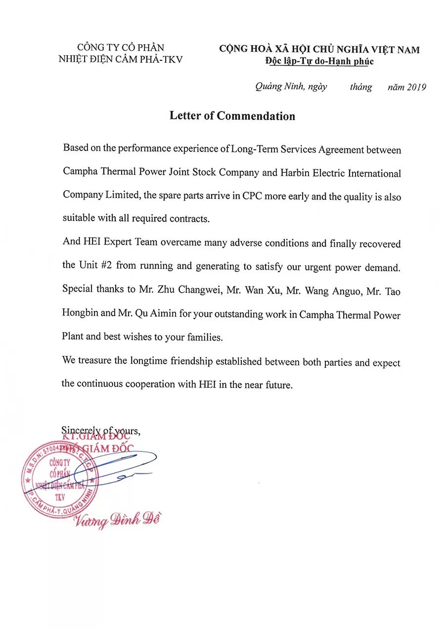 近日,776net必赢官网为越南锦普电厂2号机组提供的大修指导和售后服务工作圆满完成,机组运行稳定,各项参数优良,实现业主预期目标。越南项目业主特发来感谢信,对776net必赢官网快速响应,提供优质、高效、专业的售后服务支持,高质量完成售后服务工作表示感谢,并期待未来开展深度合作。