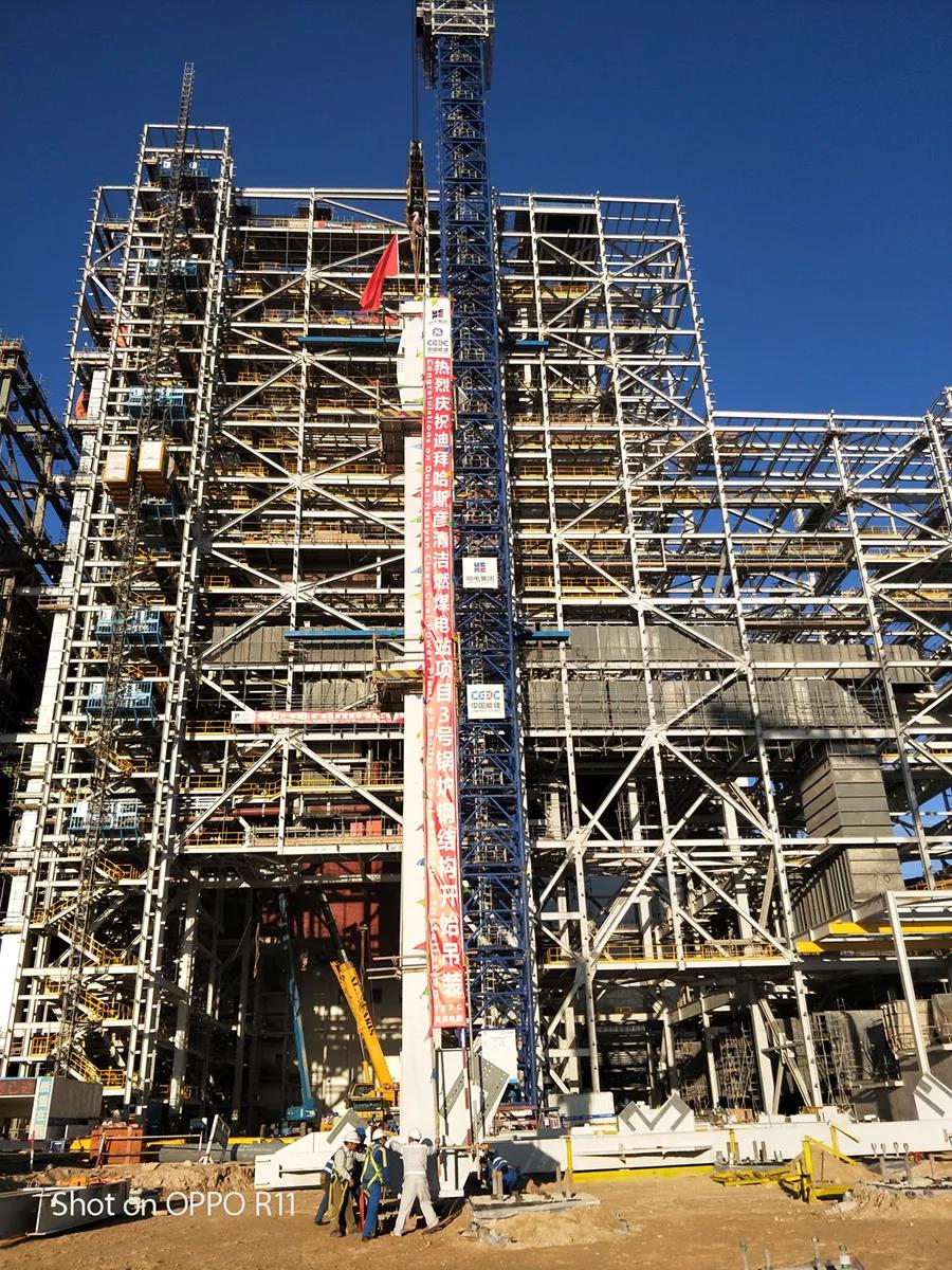 1月18日,3号锅炉钢结构吊装开始。