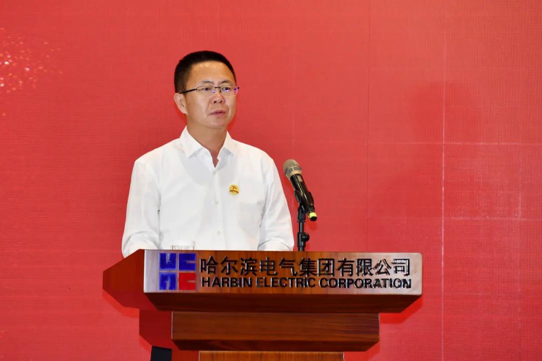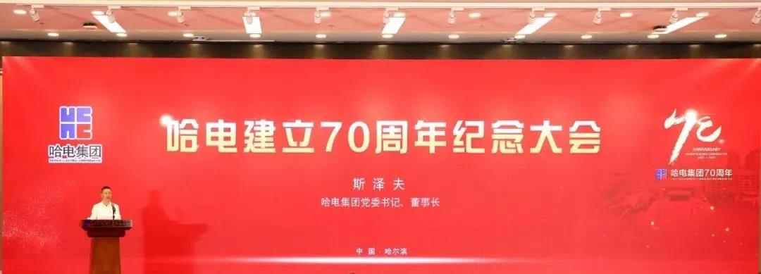 奋进七十载、启航新征程。辛丑仲夏,盛世如约。8月6日上午,哈电建立70周年纪念大会在哈电集团总部以视频会议、云直播方式隆重举行。中共中央政治局常委、国务院总理李克强为哈电建立70周年作出批示,国务委员、国务院党组成员王勇发来贺信,原全国人大常委会委员长吴邦国题词。 上午10时,纪念大会在庄严的国歌声中开幕。 纪念大会首先传达中共中央政治局常委、国务院总理李克强批示精神,宣读了国务委员王勇贺信,中央政治局原常委、全国人大常委会原委员长吴邦国题词,以及国务院国资委贺信。 哈电集团党委书记、董事长斯泽夫讲话 哈电集团党委副书记、总经理吴伟章主持会议 纪念大会由集团党委副书记、总经理吴伟章主持,哈电集团党委书记、董事长斯泽夫讲话,哈电集团党委常委、副总经理吕智强宣读《哈电集团关于“十三五”科技创新表彰奖励的决定》,哈电集团党委常委、副总经理沈同宣读《哈电集团党委关于表彰“哈电70年功勋人物”的决定》。 黑龙江省委常委、常务副省长李海涛讲话 黑龙江省委常委、常务副省长李海涛代表黑龙江省委省政府向哈电建立70周年表示热烈祝贺。他指出,作为我省中央企业的杰出代表,70年来,哈电集团引领我国发电设备行业发展,为我国经济社会发展和国防建设作出了突出贡献,是我们党百年来带领中华民族实现从站起来、富起来到强起来伟大飞跃的贡献者、见证者,是真正的“国之重器”!今年6月28日,“习近平总书记致白鹤滩水电站首批机组投产发电的贺信”和“李克强总理的批示”更体现出了党中央、国务院对哈电集团取得成就的充分肯定。 李海涛表示,哈电集团充分发挥央企产业链带动作用,有力推动了我省地方企业快速发展,奋力挺起龙江振兴发展的脊梁!希望哈电集团坚决贯彻落实习近平总书记对我省重要讲话重要指示批示精神和党中央决策部署,充分发挥人才、技术、装备等优势,积极参与全省“百千万”工程和“百大项目”建设,进一步整合资源、完善布局、坚持创新,大力发展新能源装备制造产业和国家战略新兴产业,加快推进产业高端化、智能化、绿色化,全力以赴争当原创技术策源地和产业链“链长”,借助“一带一路”,推动我省装备制造业走出去,为龙江能源产业发展和工业强省建设注入新动力,奋力在实现碳达峰、碳中和目标中实现高质量发展。省委省政府将一如既往地重视和支持哈电集团各方面的工作,为哈电集团的发展营造更加便捷高效的环境,再谱地方政府与中央企业合作的新篇章。 原机械工业部党组成员、总工程师朱森第致辞 中国核工业集团有限公司党组成员、副总经理申彦锋致辞 中国一重集团有限公司党委书记、董事长刘明忠致辞 哈尔滨工业大学党委常务副书记安实致辞 哈电集团党委党委、副总经理张英健传达中共中央政治局常委、国务院总理李克强批示精神,宣读了国务委员王勇贺信,中央政治局原常委、全国人大常委会原委员长吴邦国题词,以及国务院国资委贺信
