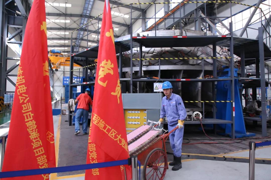 6月21日,哈电集团白鹤滩项目工地现场临时党支部传来重大喜讯,哈电集团自主研发、设计和制造的我国“世纪工程”白鹤滩右岸水电站14号机组于8时58分首次同期并网,标志着全球首台百万千瓦水电机组正式进入并网试验阶段,试验数据表明,机组各项指标优于精品机组标准,兑现了打造白鹤滩“精品工程”的承诺。