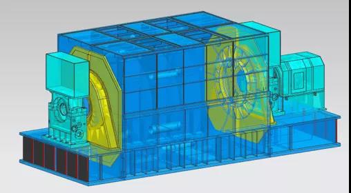 新型整体式运输50兆乏分布式调相机三维效果图。 2019年8月,哈电集团电机公司组建了分布式调相机技术开发团队,依托保持行业垄断地位的冲击发电机技术,结合空冷发电机的成熟设计经验,在300兆乏 I型、II型调相机的基础上,成功开发出50兆乏分布式调相机。期间,技术开发团队始终以用户侧需求为导向,不断进行创新改进,使机组性能得到了进一步提升。