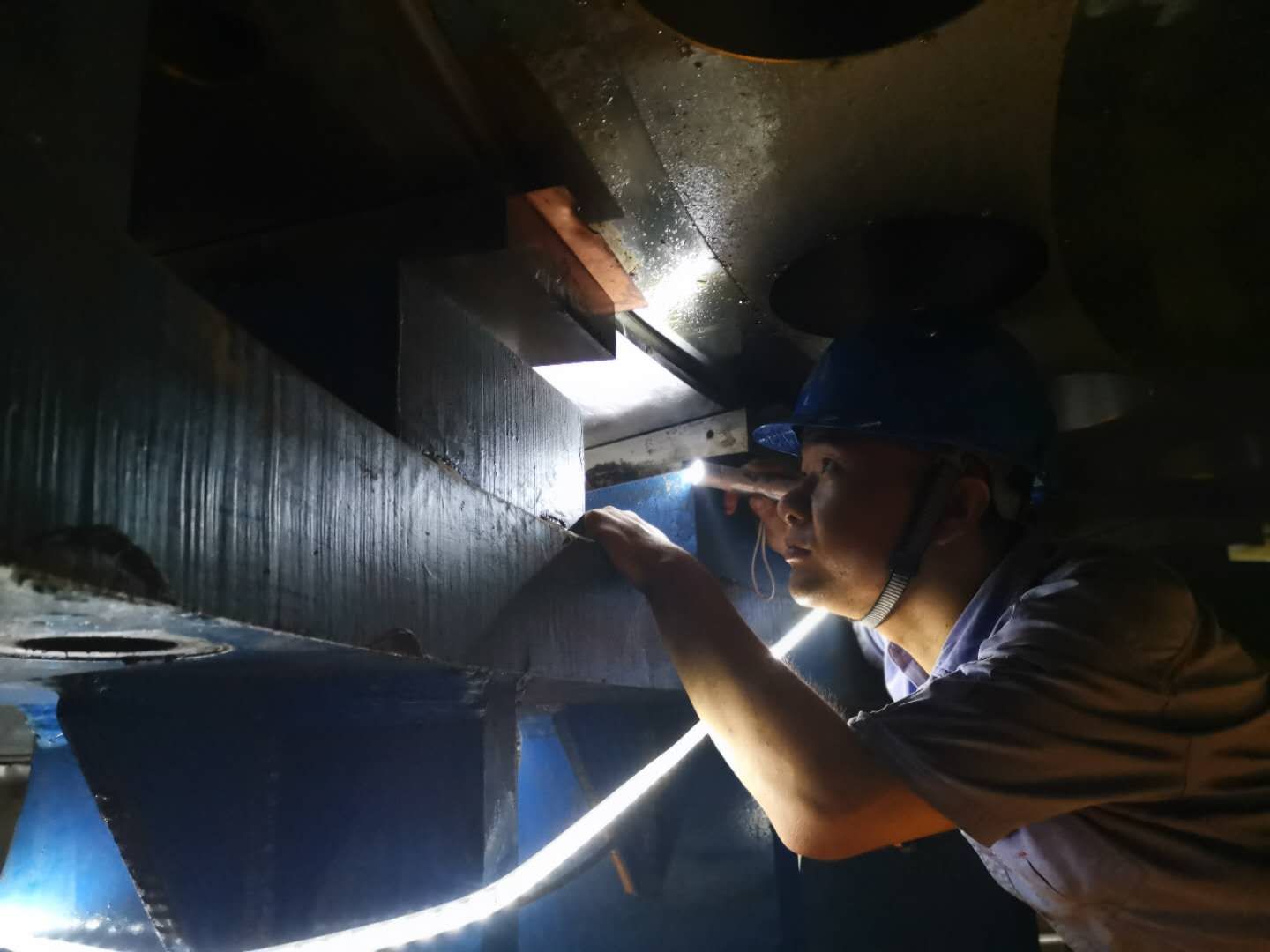 时钟回拨到当天下午14时20分,由哈电集团电机公司白鹤滩转轮加工厂送运至安装车间的庞然大物——重达338吨的白鹤滩14号机组长短叶片转轮,开始从货车上起吊。 “17点前必须吊起!”现场时间分秒必争,安装单位相关负责人正在机坑内进行最后的检查。 1300吨吊车直接在货车上起吊,起吊翻身工具通过液压拉伸器对连接螺栓预紧进行吊装,出于对设计结构和对转轮螺纹孔的保护,吊具螺栓需严格按伸长量拉伸,而当时现场安装单位人员还没有拿到拉伸器对照表。 “陶队长,你们继续工作,哈电人帮忙负责指挥螺栓拉伸试验”。现场服务人员翟志顺当机立断,主动协助参建单位扛起重任。所剩时间不多,说干就干。15时30分,拿到拉伸器对照表对照压力,与试验结果相符,哈电集团现场服务人员成功完成试验。 16时09分,在千吨桥机的缓缓牵引下,这颗世纪工程的“巨无霸”心脏,精准吊入机坑,开始调整安装。