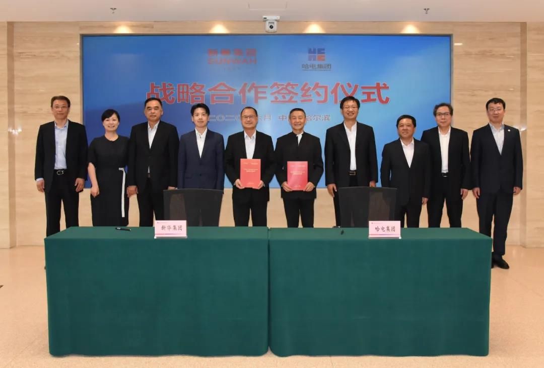 6月6日,哈尔滨电气集团有限公司与香港新华集团在哈电集团江北科研基地签署战略合作协议。 6月6日,哈尔滨电气集团有限公司(简称“哈电集团”)与香港新华集团(简称“新华集团”)在哈电集团江北科研基地签署战略合作协议。全国政协常委,哈电集团党委书记、董事长斯泽夫,全国政协常委、香港中华总商会会长、新华集团主席蔡冠深出席签约仪式,并分别代表双方签署了战略合作协议。哈电集团党委常委、副总经理谢卫江主持此次签约活动。