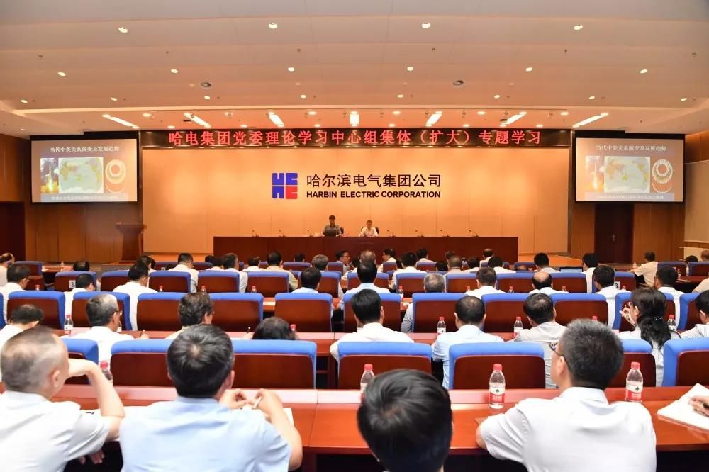 为进一步加深对习近平新时代中国特色社会主义思想的学习领会,强化对形势政策的理解,不断增强忧患意识,按照哈电集团党委“不忘初心、牢记使命”主题教育工作总体安排,集团公司党委理论学习中心组于7月3日在江北科研基地开展集体(扩大)专题学习,邀请中央党校宫力教授以《当代中美关系演变及发展趋势》为题作专题培训讲座。党委书记、董事长斯泽夫主持会议并作总结讲话。公司党委理论学习中心组成员出席会议。 宫力教授紧紧围绕“当代中美关系演变及发展趋势”这个主题,讲解了中美关系复杂敏感的深层次原因,讲述了中美贸易磨合的过程,深入分析了中美贸易摩擦及其影响,展望了中美关系的发展前景。整场讲座主题鲜明,重点突出,思想深刻,内容详实引人入胜,分析见解独到精辟,是一堂生动的形势任务教育课,也是一堂爱国主义教育课。 斯泽夫在总结讲话时指出,两天前伟大的中国共产党刚刚度过98岁生日,今年中华人民共和国还将迎来70周年华诞,开展“不忘初心、牢记使命”主题教育适逢其会,对于集团打赢“三大战役”,推动深化改革、转型升级,加快实现高质量发展,必将产生巨大的促进作用。 斯泽夫强调,广大党员领导干部要深刻认识中美贸易摩擦的本质,增强斗争意识,在战略上与以习近平同志为核心的党中央保持高度一致。要深刻认识加强和改进国有企业党的建设的重要性,深刻理解思想建党、理论强党的本质和内涵,自觉承担国有企业的“三重责任”,同时结合宫力教授的专题讲座,学深悟透、融会贯通,知行合一、学以致用,进一步推进学习贯彻习近平新时代中国特色社会主义思想往深里走、往实里走。要进一步提高政治站位,增强“四个意识”,坚定“四个自信”,站在党和国家事业发展全局的高度思考问题、推进工作,把抓好主题教育作为坚决做到“两个维护”的重要抓手。要加大自主创新力度,服务党和国家事业,全力攻克“卡脖子”技术,同时要严格管控各类风险,在共建“一带一路”中充分发挥主体作用。 斯泽夫要求,广大党员领导干部要发挥模范带头作用,坚持问题导向,用正视问题的自觉和刀刃向内的勇气,真刀真枪解决实际问题,确保主题教育取得实效,以主题教育助推集团实现高质量发展,朝着建设具有全球竞争力的世界一流装备制造企业的目标阔步前行,以优异的成绩迎接中华人民共和国七十华诞。 总部各部门、各事业部、中央研究院、投资公司负责同志及总部内设机构负责同志在主会场参加会议,各所属单位领导有关同志以视频会议方式在分会场参加会议。