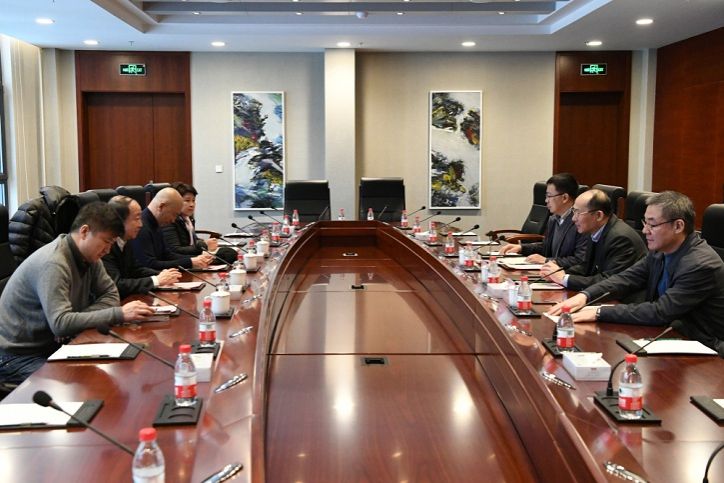集团公司总经理助理曲哲等与平房区人大常委会副主任孙铁利、上海哈尔滨商会会长邓来弘一行举行会谈
