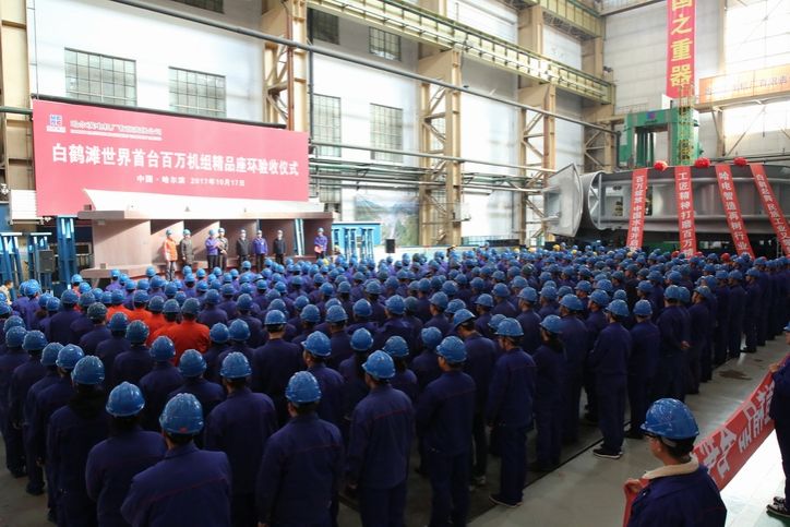 10月17日,哈尔滨电气集团公司(简称哈电集团)研制的世界单机容量最大白鹤滩100万千瓦水电机组首台座环在哈电集团电机公司水电分厂通过中国长江三峡集团机电工程局验收。 验收结果表明:各项指标完全符合合同要求,满足三峡集团提出的座环优等品尺寸标准。三峡集团机电工程局党委书记、副局长胡伟明对白鹤滩世界首台百万机组座环通过出厂验收给予充分肯定,他表示,这标志着白鹤滩机组制造进入了重要阶段,是中国水电向世界水电“无人区”迈出的重要一步。白鹤滩水电站是中国长江三峡集团开发的金沙江下游河段梯级的第二级电站,是目前在建的世界最大水电站,电站建成后,将仅次于三峡水电站,成为世界第二大水电站。电站装机16台单机容量为世界最大的100万千瓦水轮发电机组,全部由“中国创造”,这是我国水电发展史上的又一次历史性巨大飞跃。白鹤滩百万机组首台精品座环 白鹤滩水轮机座环长约17.2米,宽约14.5米,高约4米,总重超过500吨,是白鹤滩水轮机所有结构组件中单体重量最大的部件,也是水轮机结构组件中运输尺寸最大的部件。为了将白鹤滩项目打造成世界精品工程,电机公司精益求精。在吸收三峡、溪洛渡、向家坝等大型机组座环优点的基础上,技术人员对白鹤滩座环进行优化和完善,结构布置更为合理,尺寸要求更加严格,细节处理更加完善,设计要求和制造标准双向提高,进一步提高了机组的稳定性。白鹤滩100万千瓦水电机组首台座环通过验收,标志着电机公司全面突破了100万千瓦级水电机组关键部件座环的研制难题,更是为打造白鹤滩精品机组,开创世界水电百万千瓦级新纪元增加了砝码。在验收仪式上,哈电集团党委副书记冯永强表示,哈电集团将牢固树立“千年大计,质量第一”的意识,深入落实“七个零”等具体工作要求,再接再厉,不辱使命,以坚韧执着的品格,坚定不移的信念和实实在在、卓有成效的工作,为打造白鹤滩精品工程而努力奋斗。电机公司党委书记、董事长张锐在致欢迎词时表示,我们要以对党、对国家、对人民、对历史高度负责的态度,铸大国重器、树民族品牌、立世界标杆,把打造白鹤滩水电站世界一流精品工程作为我们共同的伟大事业,与三峡集团通力合作,建好中国水电这一国家名片,共铸中国水电新的辉煌!电机公司党委副书记、总经理王前庄表示,白鹤滩精品座环顺利通过验收,只是万里长征走完了第一步。他表示,参与白鹤滩机组设计制造的所有单位和全体同志们一道,在项目执行全过程中,将会一如既往、极端重视,慎终如始,务求实现白鹤滩机组“台台精品、件件一流”的目标。 中国长江三峡集团机电工程局、长江三峡技术经济发展有限公司、中国长江电力股份有限公司、长江电力乌白电站筹备组、华东勘测设计研究院有限公司等单位的相关领导和专家,电机公司相关领导和职工,共同见证了这一历史时刻。国家、省、市、行业部分媒体记者现场进行了采访报道。 阅读延伸:白鹤滩电站机组为中高水头、中低转速、巨型混流式水轮发电机组。机组不仅运行水头高、变幅范围广,而且结构外形尺寸巨大。哈电集团电机公司从机组安全高效运行角度出发,重点针对巨型机组稳定性、水力开发、电磁、结构、绝缘技术、疲劳破坏和过渡过程、通风冷却试验及测试方法等方面进行科研攻关,攻克了多项世界性技术壁垒,推动着我国巨型水轮发电机组制造技术进一步走向成熟。 座环是反击式水轮机最重要的受力部件之一,主要由上、下环板,固定导叶,蜗壳过渡段及基础法兰等组成。它既是机组的基础埋件,又是机组通流部件的组成部分;既承受着随机组运行工况改变而改变的水压分布载荷,又承受着由导水机构传导过来的作用力。 首台座环从2016年4月26日投产到现在,历时1年半。从产品下料、喷砂、切削,到铲磨、清理、涂漆,电机公司坚守“精细过程,精品结果”的质量观,加强质量策划和管控,持续推进精益化生产管理,综合平衡设备资源、场地资源、人力资源,组织开展长时间、大跨度、多工种的协同攻关,保证每一个细节的圆满完成。 潜心钻研多年100万千瓦水电机组关键技术的电机公司,承担其右岸电站共计8台套水轮发电机组及其附属设备的研发、制造,继续冲击行业珠峰,领舞世界水电之巅。在此之前,电机公司自主研制的向家坝水电站机组,单机容量为80万千瓦,是目前世界上已运行的单机容量最大的水电机组。