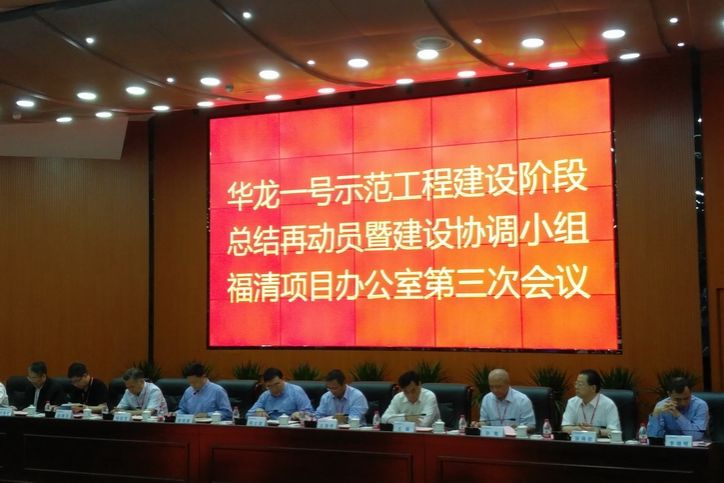 哈电集团总经理助理、股份公司副总裁张海权等领导受邀参加了福清核电5号机组穹顶吊装节点见证暨再动员活动及华龙一号示范工程建设协调小组福清项目办公室第三次会议。