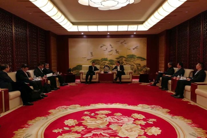 集团公司董事长、党委书记斯泽夫与国家电投董事长、党组书记王炳华等进行交流