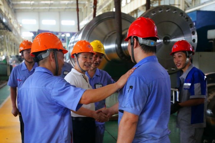 8月5日,集团公司领导斯泽夫、吴伟章顶着高温来到生产一线,对在酷暑中坚守岗位、坚持工作的干部、员工表示亲切慰问。 近日,哈尔滨市受副热带高压北上的影响,连续数日出现了少见的高温天气,为生产工作带来不小的困扰。 在已经安排集中带薪休假的汽轮机公司和电机公司,生产现场是一派热火朝天的繁忙景象,各关键工序、关键设备和岗位的生产工作一如往常地开展,现场员工们放弃了难得的假期,不畏酷暑、坚守岗位。在白鹤滩百万千瓦水电项目首台座环等重点项目关键部件的生产现场,斯泽夫仔细查看并认真询问产品的生产情况。 斯泽夫边走边看,不时向正在加班生产的员工挥手问候。看到职工们挥汗如雨,斯泽夫快步走上前去同大家一一握手,并代表集团对大家在高温环境下仍坚守岗位、辛勤付出表示感谢。他询问了大家的生产生活情况,并一再叮嘱员工们在保证生产、工作和产品质量的同时,更要注意防暑降温和生产安全。 锅炉公司未安排集中带薪休假,在锅炉设计开发处,斯泽夫、吴伟章亲切问候了广大技术战线上的职工,详细询问了当前的设计工作量、产品技术创新等情况,对锅炉设计开发处为集团和锅炉公司发展所做的贡献给予了充分肯定。斯泽夫勉励科技人员再接再厉,为企业发展再立新功,让技术真正成为企业发展的不竭动力和根本保证。斯泽夫还同特聘专家进行了亲切的交谈,并对他们在哈电的工作和生活表达了问候和关怀。 陪同慰问的还有集团总部办公厅、党群工作部有关负责人,锅炉公司、汽轮机公司、电机公司部分领导班子成员及相关人员。 另据了解,锅炉公司、汽轮机公司、电机公司等所属企业与往年暑期一样,在组织员工做好生产工作的同时,均通过配给绿豆汤、购买矿泉水等消暑饮品等方式,开展了送清凉活动,有的企业直属单位还制定了中暑应急响应预案并配置了防暑药品,用实际行动关心关爱最高气温下工作的员工。