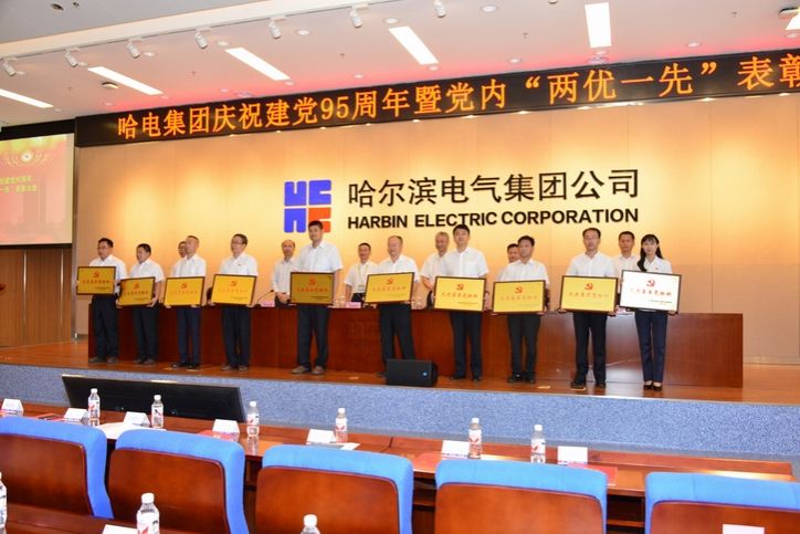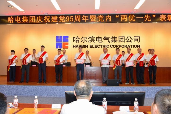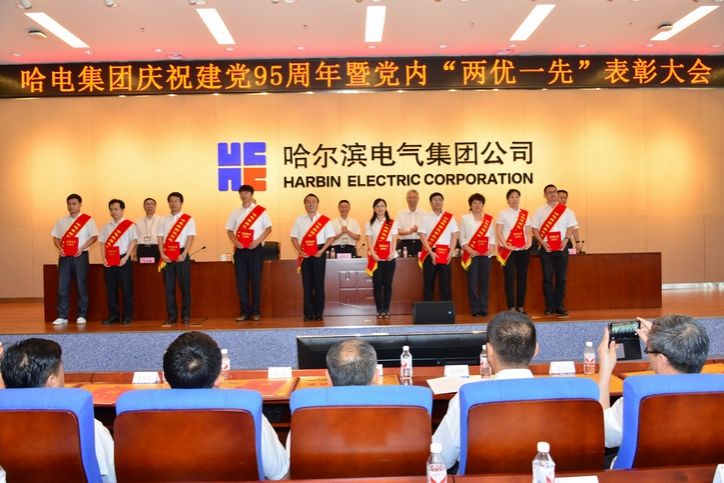 7月1日,在喜迎中国共产党95周年华诞之际,集团公司隆重召开了庆祝建党95周年暨党内“两优一先”表彰大会,回顾党的光辉历程,继承光荣传统,表彰先进典型,进一步凝聚起推进哈电集团转型发展的合力。集团公司领导斯泽夫、苗立杰、冯永强、白绍桐、宋世麒、刘智全出席会议。 党委书记、董事长斯泽夫就坚定信念、解放思想、发挥干部作用、从严治党以及推进党建工作等五方面作重要讲话,阐述了坚持党的领导、加强党的建设的重要意义,深刻剖析了当前的形势与任务,提出了下一步有关工作思路和重点,向各基层党组织和广大共产党员提出了明确的要求和希望。 党委常委、副总经理苗立杰主持会议,并就贯彻落实会议精神指出,要抓好学习组织、工作落实和互动共进。 党委副书记冯永强宣读了《哈电集团党委关于在“两学一做”学习教育中表彰先进集体、先进个人的决定》。 会上,获奖代表电机公司水电分厂胡宇、汽轮机辅机公司党支部书记贾泽分别进行了发言。 本次表彰大会共授予25个单位“先进基层党组织”荣誉称号,50名同志“优秀共产党员”荣誉称号,25名同志“优秀党务工作者”荣誉称号。 集团总部副处级及以上党员领导干部,所属企业党员领导班子成员,受表彰的先进集体、先进个人代表,以及集团和所属企业的部分党员代表参加了会议。
