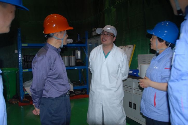 在生产厂房调研过程中,斯泽夫十分关心一线员工的工作和生活情况,在重装公司高温堆蒸发器内件组装清洁室,斯泽夫与焊接工程师郑明涛亲切交谈,详细询问郑明涛的工作负荷、工资待遇等情况