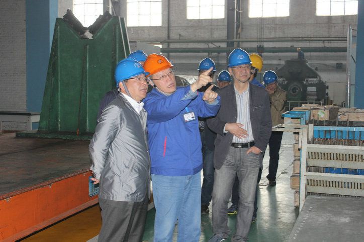 5月18日,国资委规划局副局长贾立克一行到哈电集团调研,与集团公司副总经理苗立杰等有关领导和部门负责人举行座谈。并在苗立杰等陪同下视察了汽轮机公司三分厂生产现场。图为贾立克(左一)在汽轮机公司听取有关重点项目的执行情况的介绍。