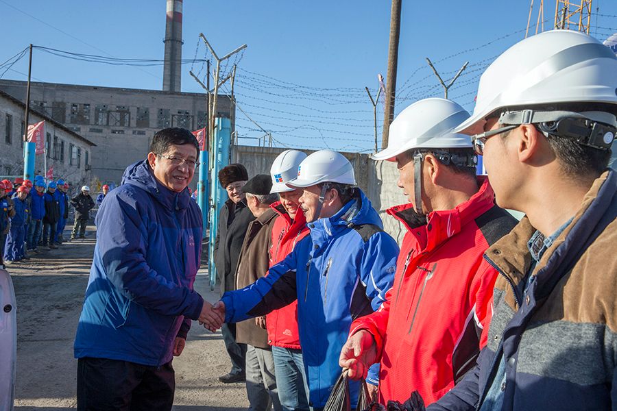 每年春节前夕,776net必赢官网领导都赴各项目现场慰问无私奉献的广大员工。图为,776net必赢官网总经理曲爱民慰问安格连项目现场员工。