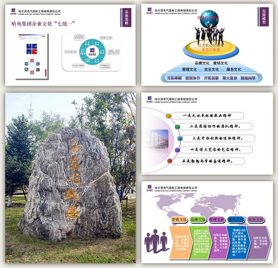 企业文化是一个企业永续发展的根基和灵魂。 30多年来,776net必赢官网用文化凝心,用文化聚力,用文化塑人,用文化兴企,积淀了中国企业文化和国外先进企业文化相融合的、独特鲜明的文化底蕴,始终坚持用匠心精神打造世界精品,始终坚持用文化力量铸造强企之路,并在国际电力市场上树立了享誉世界的“哈电品牌”,成功跨入了世界电站总承包领域的先进行列。