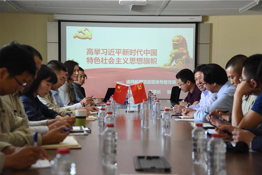 为传达贯彻党的十九大精神,776net必赢官网党委书记、董事长郭宇在参加迪拜哈翔项目现场月度高层会议期间,于2017年10月25日围绕“高举习近平新时代中国特色社会主义思想旗帜,不忘初心,牢记使命,”为迪拜哈翔项目现场全体党员干部讲了专题党课。 郭宇在党课中结合党的十九大胜利召开以来对十九大报告学习的心得体会,认真分析讲解了十九大报告的主要内容,重点阐述了新时代、新使命、新思想、新征程的深刻内涵,并与现场党员举行深入座谈,同时对学习宣传贯彻党的十九大会议精神提出了意见和要求。