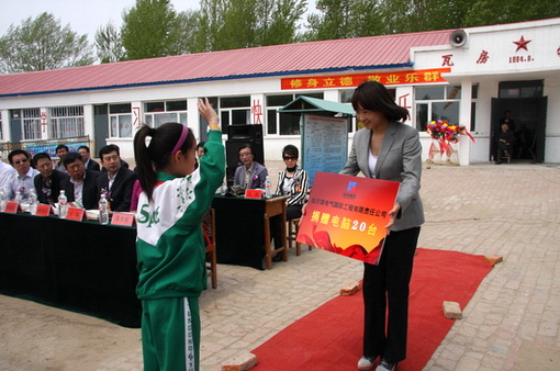 2012年5月12日,公司团委书记张磊带领公司团委青年干部一行,赴大庆市头台镇瓦房小学进行电脑捐赠和爱心助学捐款活动。