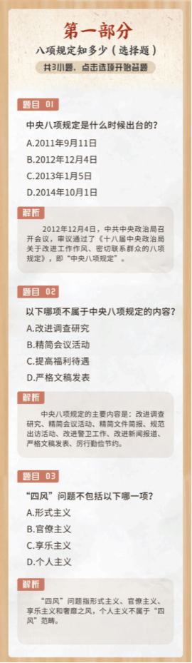 学习教育|@党员干部!测测你对中央八项规定了解多少?
