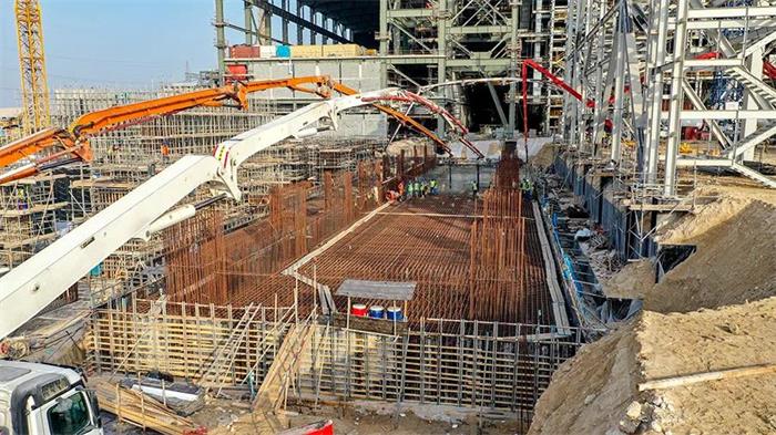 Por su parte, el 26 de junio a las 15:30, hora local, se completó sin contratiempos y tras 19 horas de trabajo continuado el vertido de las losas de cimentación de las columnas C y D de la planta principal n.º 3, con un total de 2850 metros cúbicos de hormigón vertidos. Con la consecución sin contratiempos de esta tarea se logra establecer una sólida base para el posterior trabajo de izado y montaje de las estructura de acero que irá en la planta principal n.º 3 del proyecto de Hassyan.